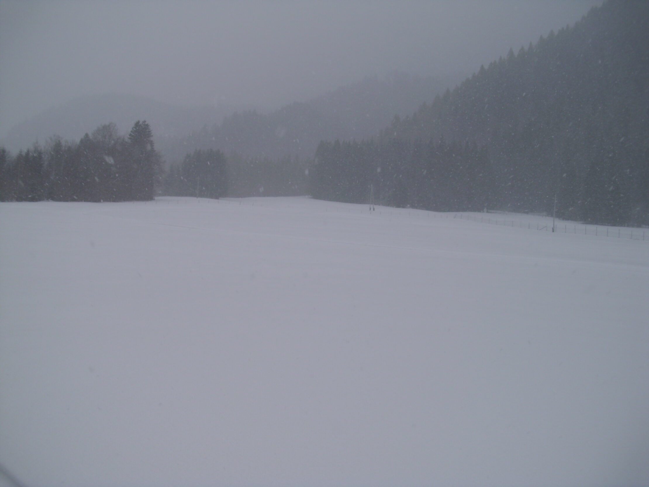 Samstag ca. 15 cm. Da den ganzen Tag im Tal dichte Schneefälle herrschen, wird noch einiges an